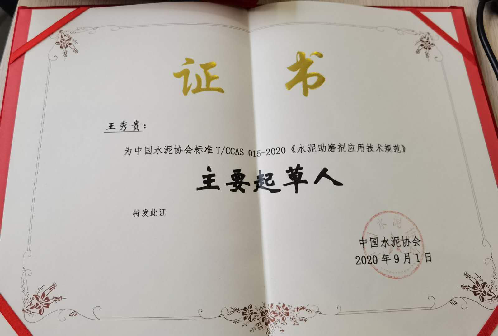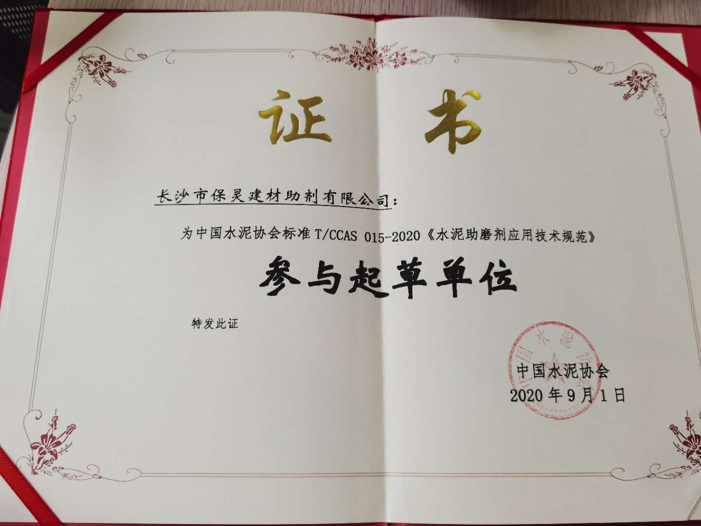 我司在為中國(guó)水泥協(xié)會(huì)標(biāo)準(zhǔn)T/CCAS 015-2020《水泥助磨劑應(yīng)用技術(shù)規(guī)范》做出重要貢獻(xiàn),被授予:參與起草單位