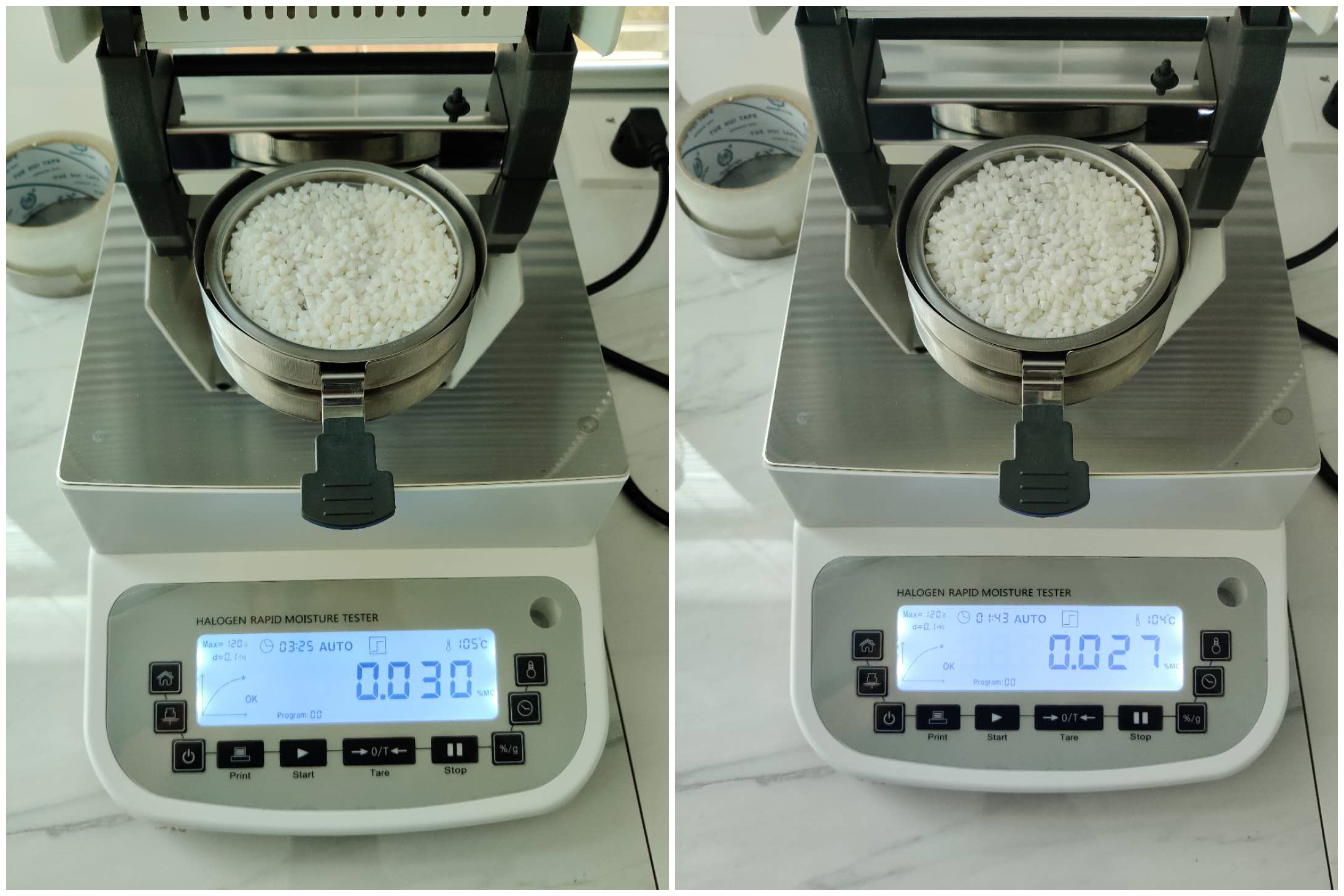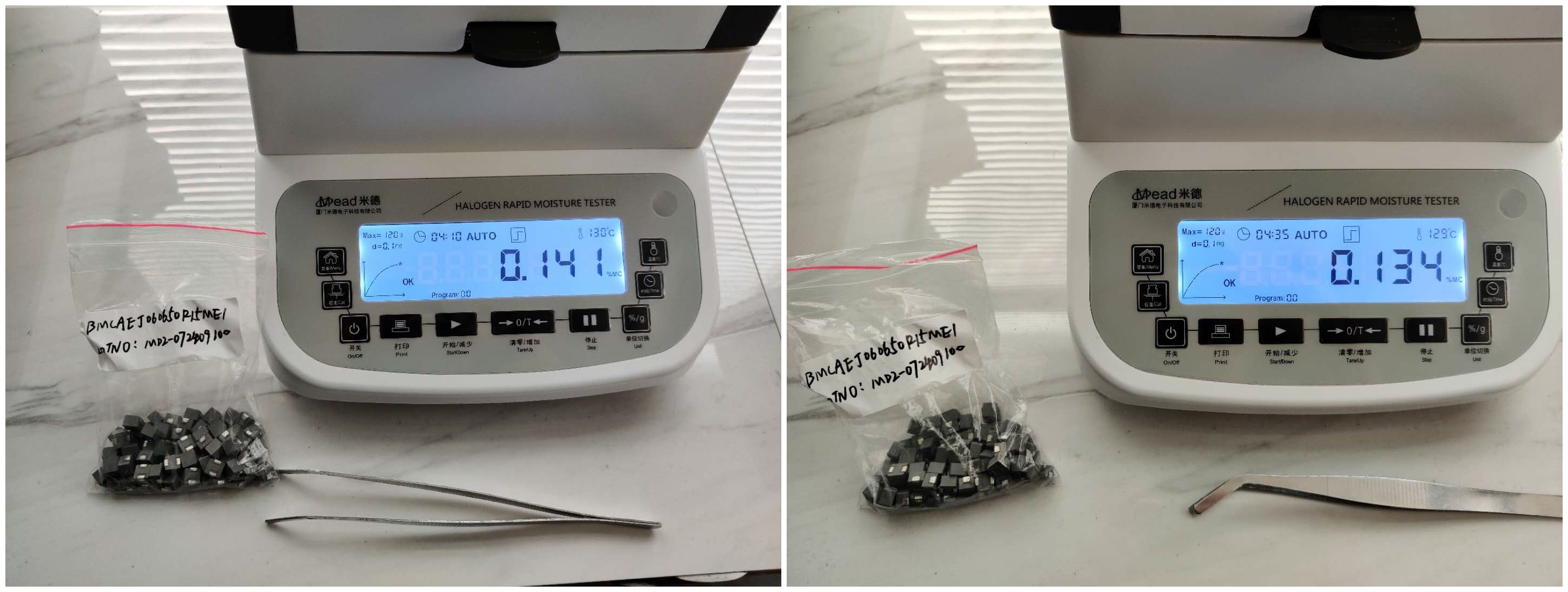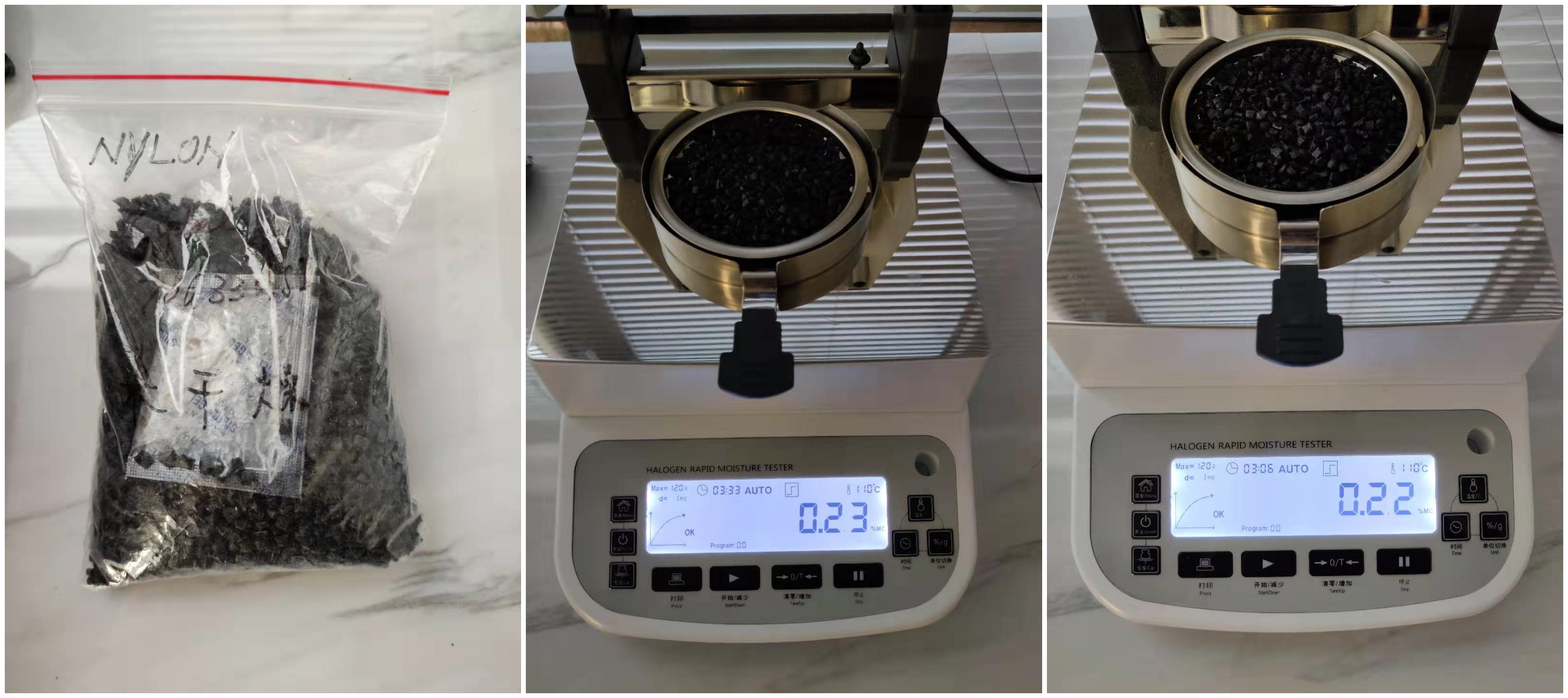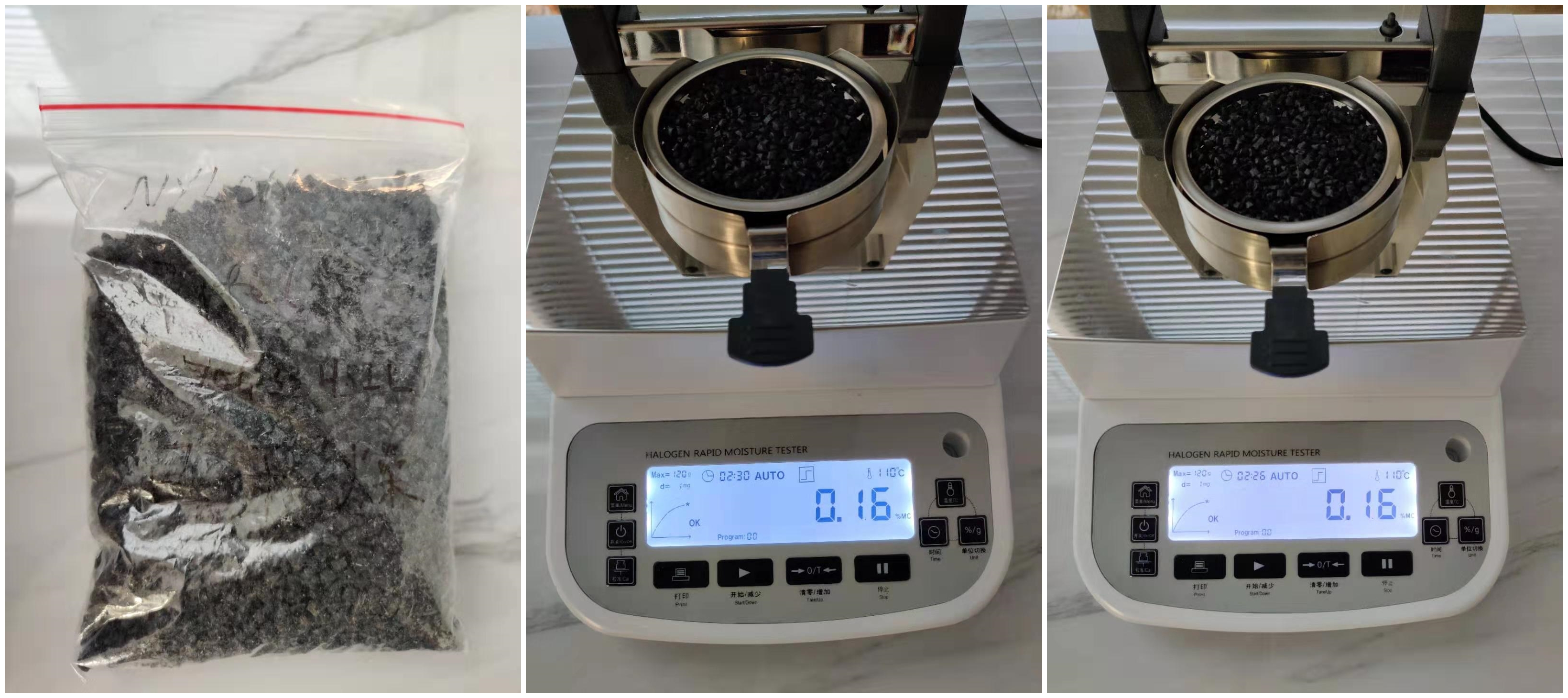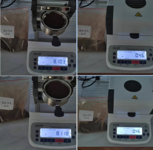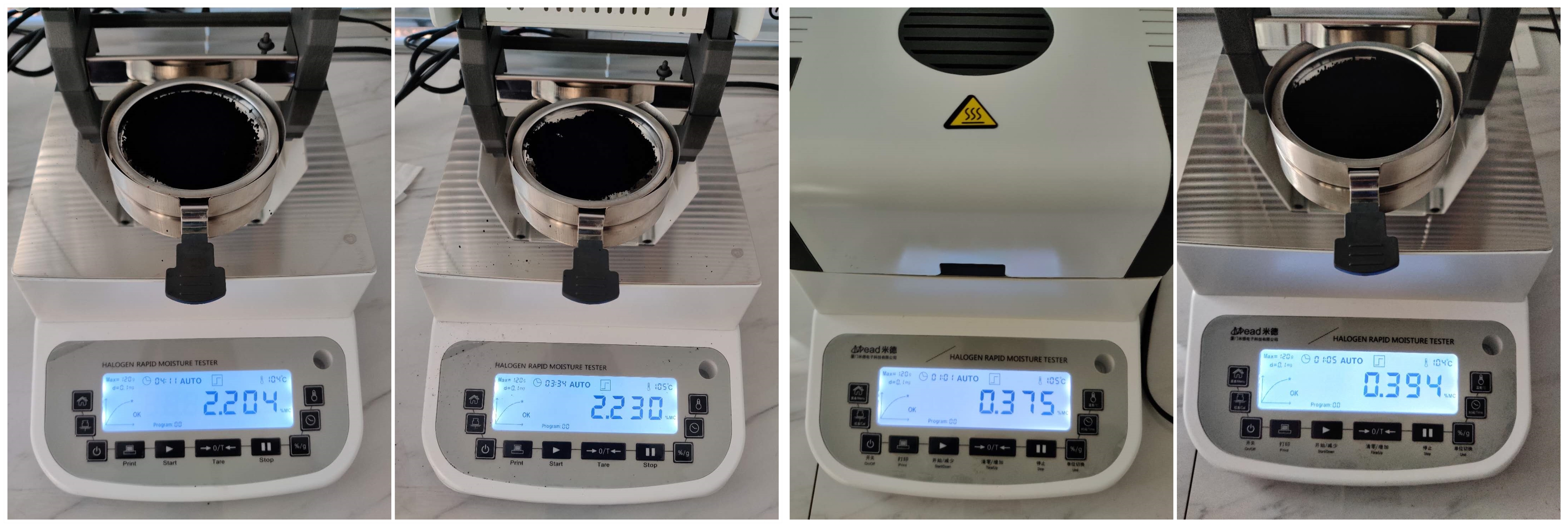 4.10、將裝有樣品的樣品瓶放入加熱孔中,插入空芯針,在水分測定儀上輸入樣品重量,調(diào)整延時時間,同時水分儀上開始測量。在屏幕上點(diǎn)方法,并且在方法中輸入樣品稱重質(zhì)量,等待測量完成顯示最終含水量結(jié)果。