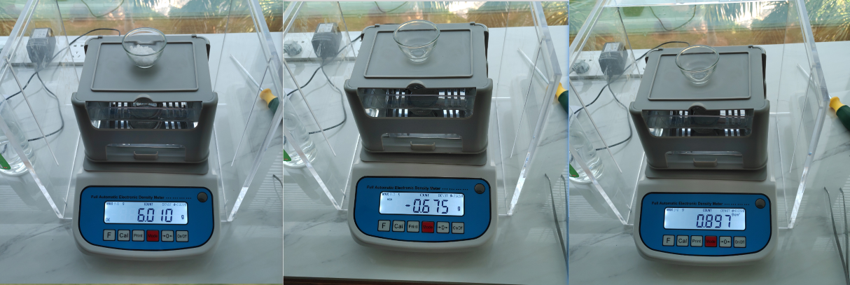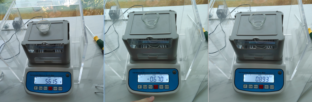 1、先將密度計(jì)進(jìn)行稱重校準(zhǔn),為得到精準(zhǔn)的測(cè)量數(shù)據(jù)提供前提和保證。