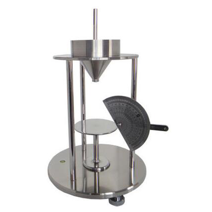 SK-16913型注入限定底面法安息角測試計是廈門群隆儀器有限公司依據(jù)國家標(biāo)準(zhǔn)GB/T 16913.5-1997(本標(biāo)準(zhǔn)參照采用ISO 4324:1997粉狀和粒狀表面活性劑——粉體和顆?!葜菇堑臏y定)的規(guī)定設(shè)計、生產(chǎn)。本裝置適用的測定對象是粉塵,采用注入限定底面法測定粉塵安息角,與ISO 4324:1997的主要技術(shù)差異是不測量堆積在限定底面上的粉塵高度而采用量角器直接測定粉塵安息角。