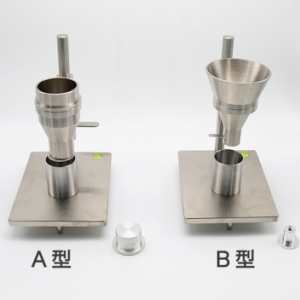 A型漏斗要求: Apparatus for Apparent Density Test, Method A 漏斗上出口直徑:9.3cm 下出口直徑:0.95±0.08cm 漏斗高度:11.4cm 漏斗材質(zhì)要為不銹鋼316SS。 漏斗容積:400ml以上 量杯口與漏斗下出口的高度為:3.8cm; 量杯:高度7.98cm、直徑3.99cm; 配置附件:毛? 刷1只;鋼尺15cm1把、說明書、保修卡、合格證 | 漏斗的高度:24±0.1cm; 漏斗與量杯的高度:3.8cm; 漏斗下出口:2.54cm±0.16cm; 漏斗上開口:12.7±1.0cm; 量杯的容積:400ml±2.0ml; 角度:24度; 材質(zhì):不銹鋼材質(zhì); 配置附件:毛? 刷1只;鋼尺15cm1把說明書;保修卡;合格證。